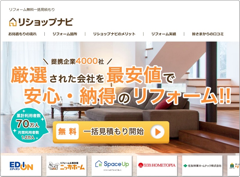 次に、日本最大級のリフォーム業者一括見積りサイト『リショップナビ』